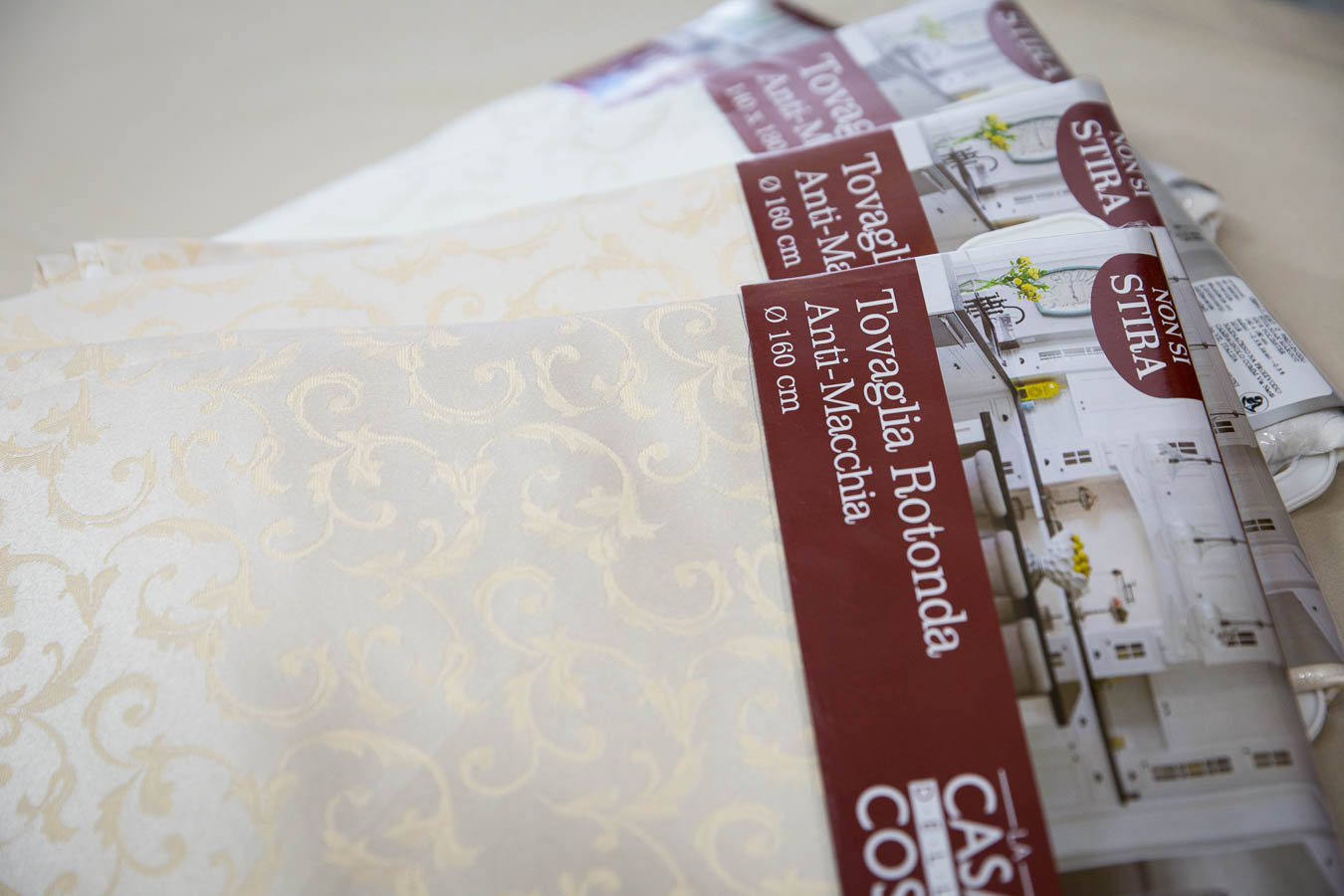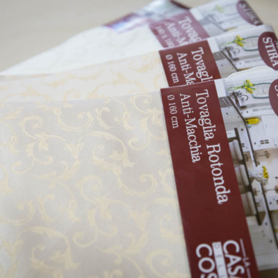 Posteljine, pokrivači, deke, ručnici, stolnjaci, kuhinjske krpe, pregače, kompleti, bademantili, otirači, kompleti za kupatilo, kišobrani… U veleprodaji kućnih potrepština su zastupljene slijedeće robne marke: Conviva, Margaret Pickens, La Casa delle Cose, Filago, Perletti…